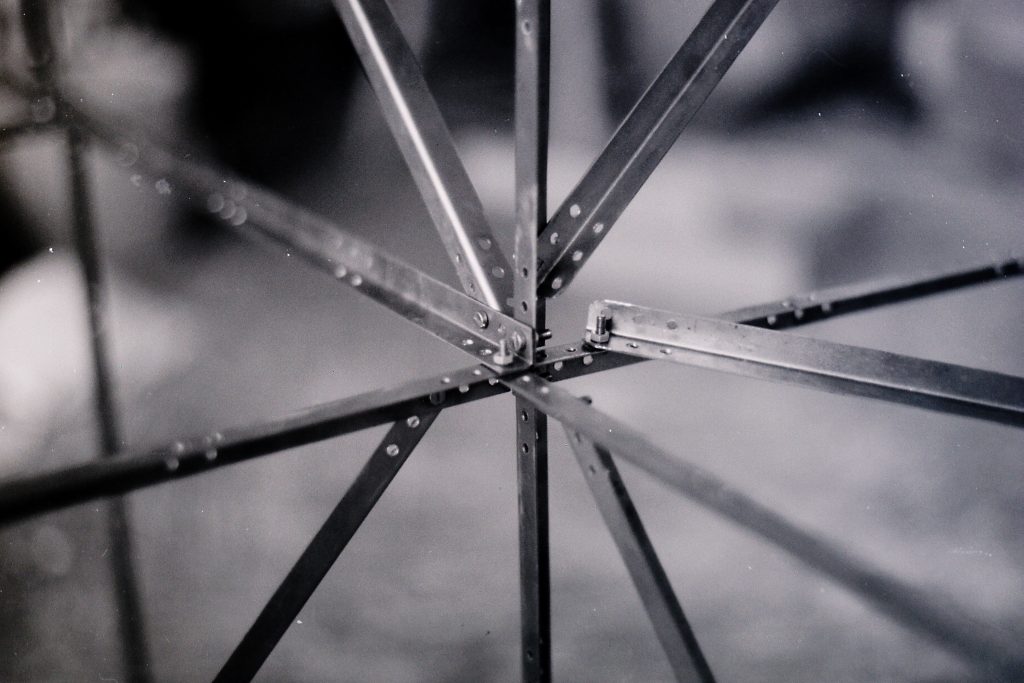 Baukasten aus gekanteten und verschweißten Stahlblechprofilen und -verbindungsknoten, 1983