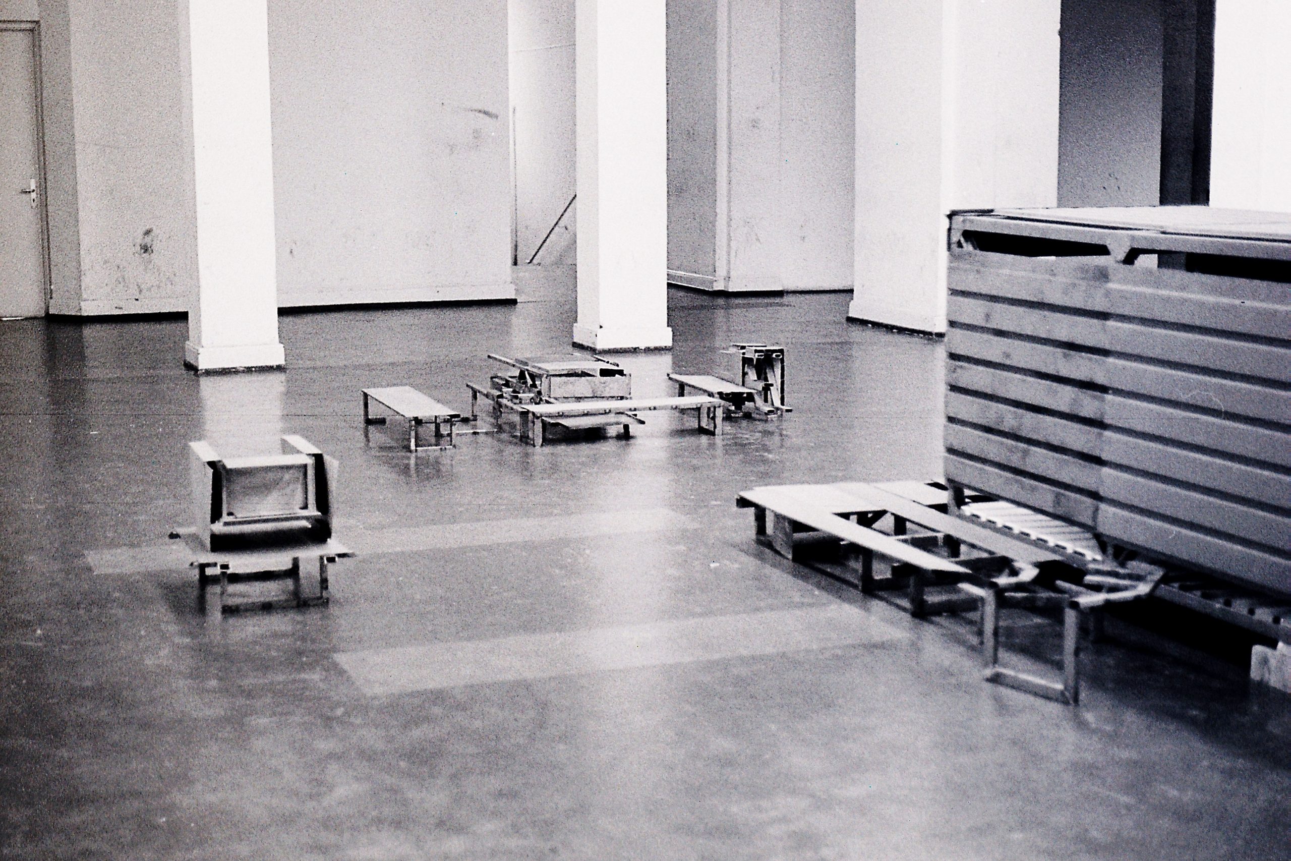 vielteilige Anlage, Bibliotheksvorraum der HfbK, 1983; Vorstellung einer zweiten Raumebene als Sockel