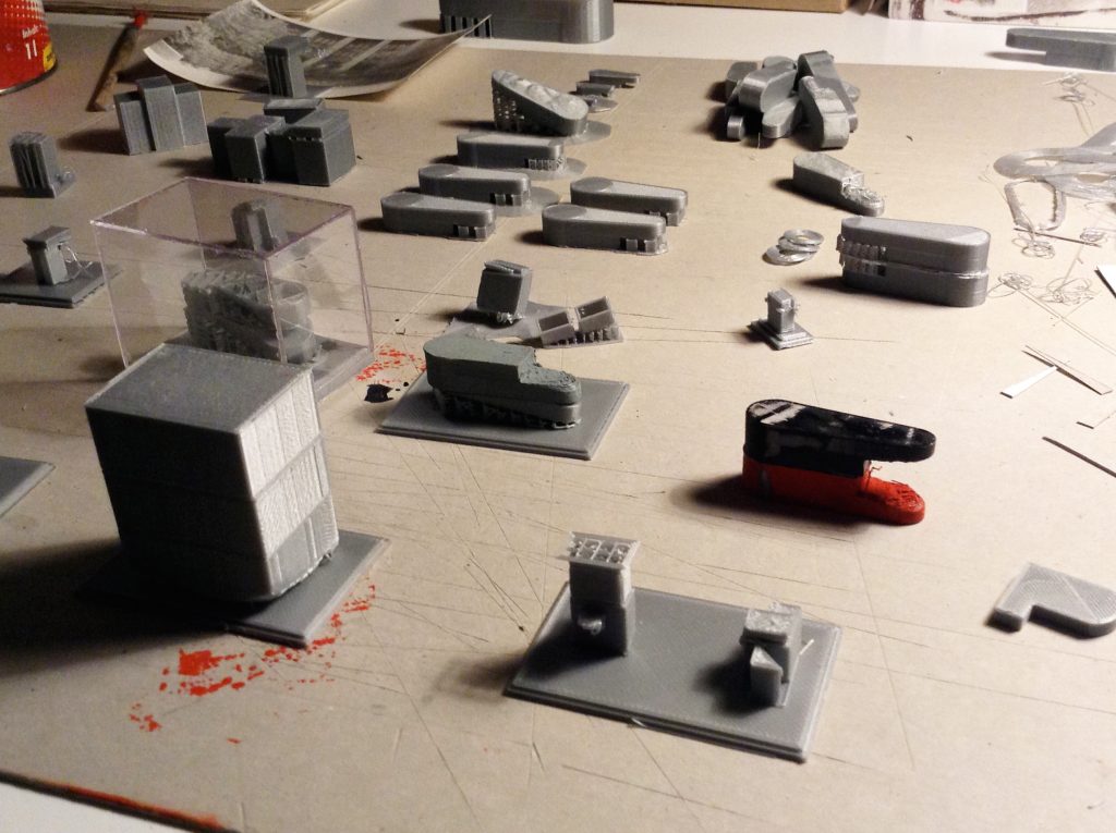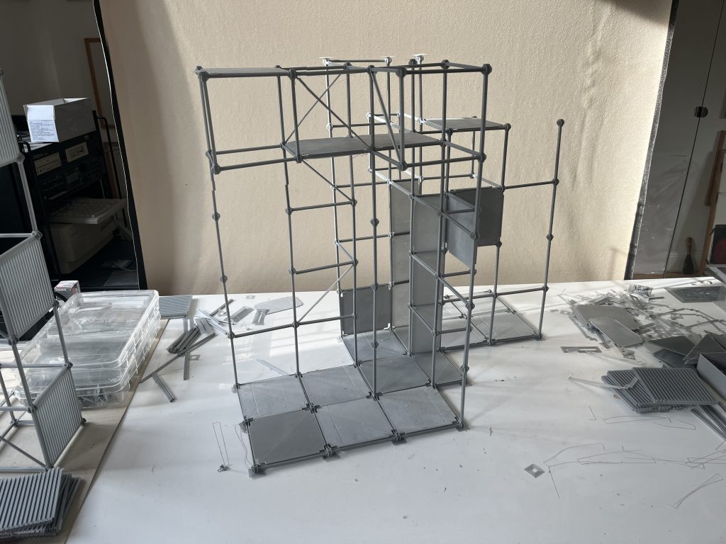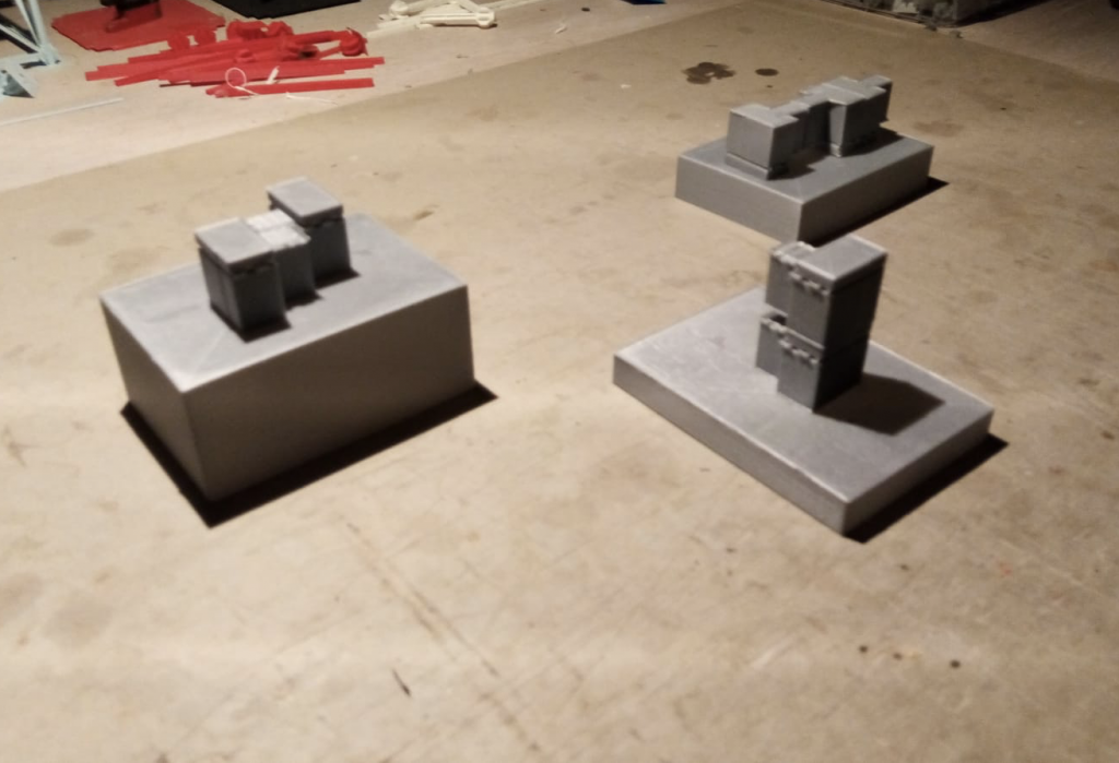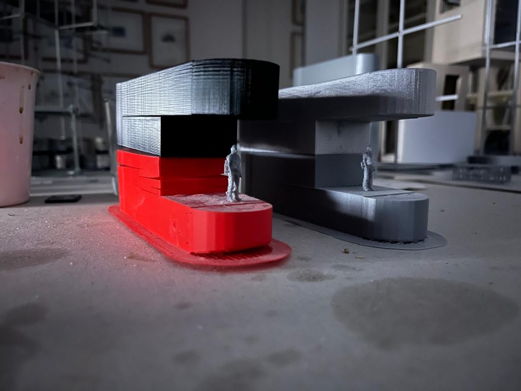 PLA-Drucke, 2024 / Regelbau, unterschiedliche Anordnungen identischer Baukörper auf 3 Sockeln, 2024