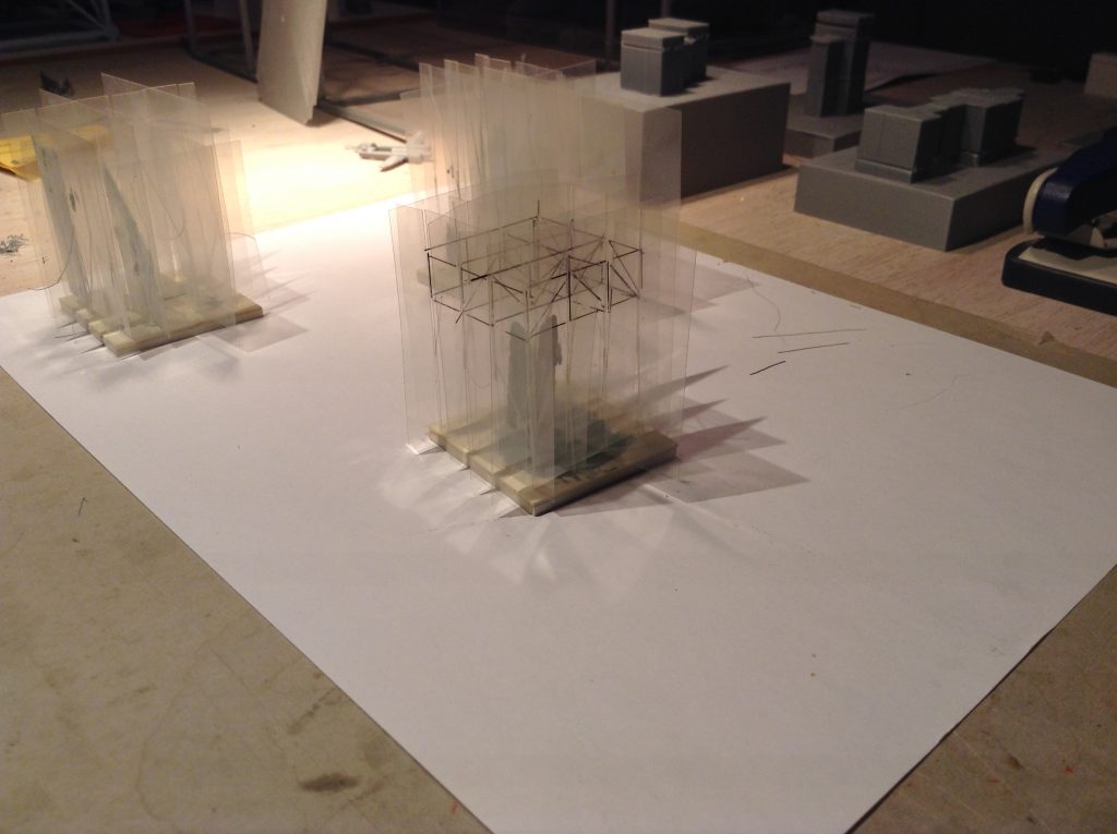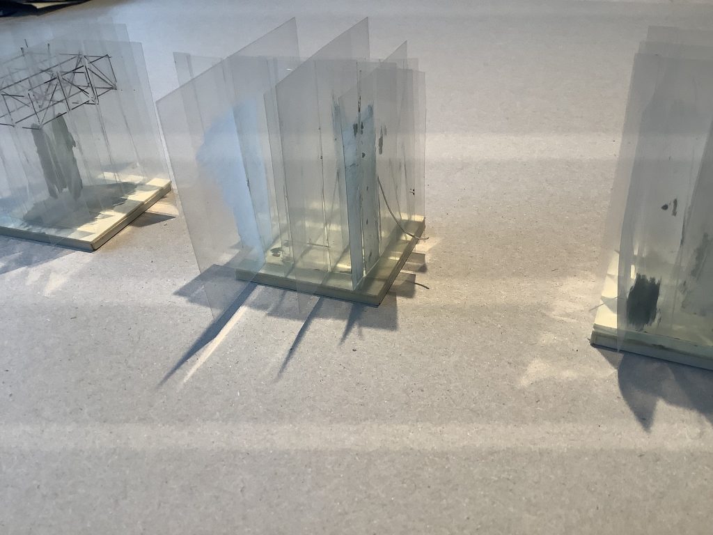 Folienmodelle, mit Farbe eingetragene Wände, angedeutete räumliche Zusammenhänge, 1998