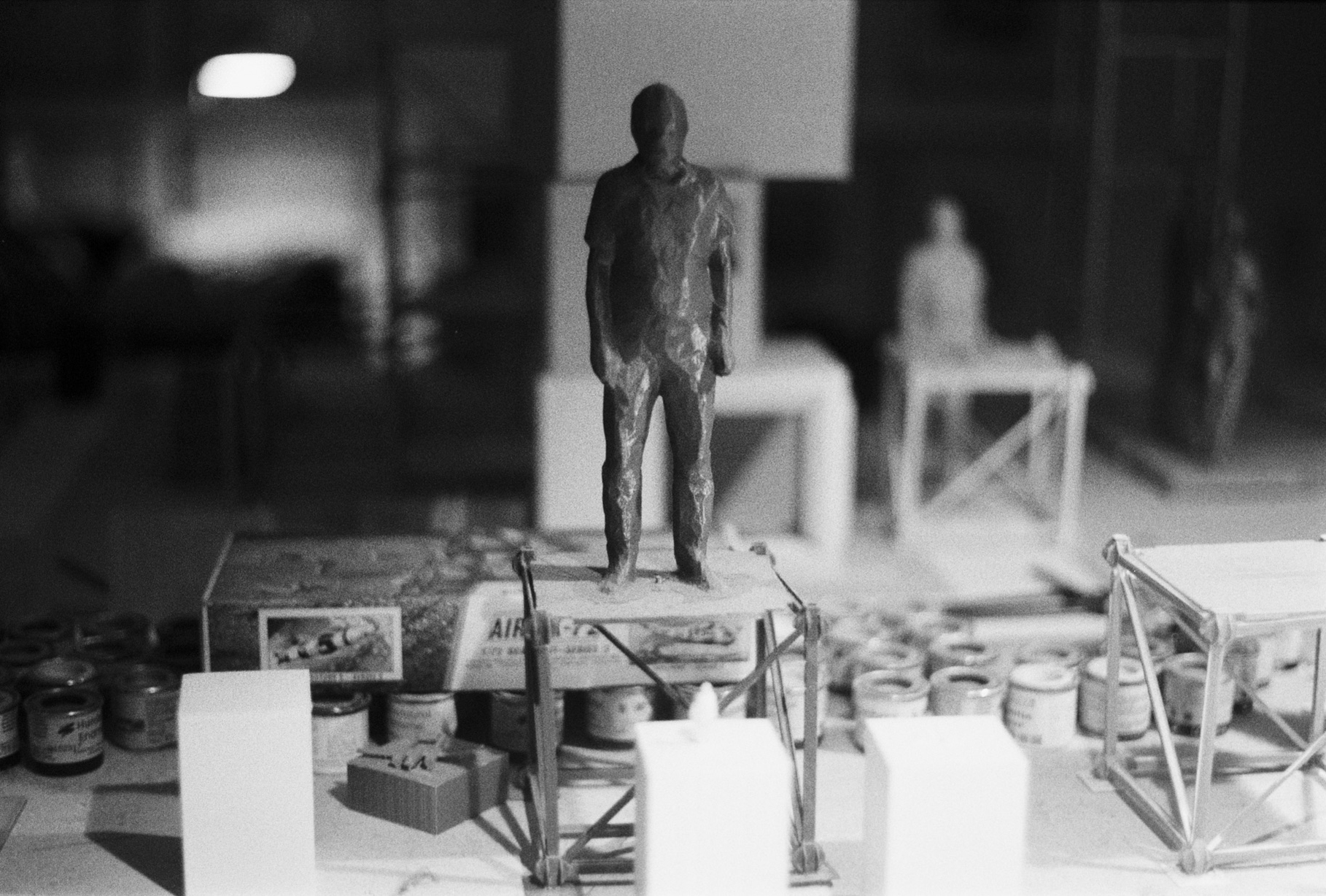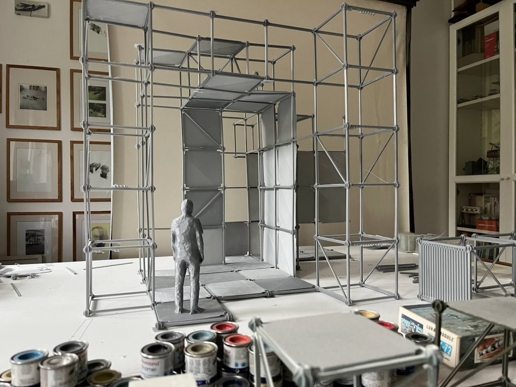 Ein Großteil dieser Arbeiten bezieht sich auf die Welt des Modellbaus, im Kern geht es um plastische Modelle als Skulpturen. Neuere Arbeiten ergänzen diese Modelle um maßstabsgetreue Figuren.